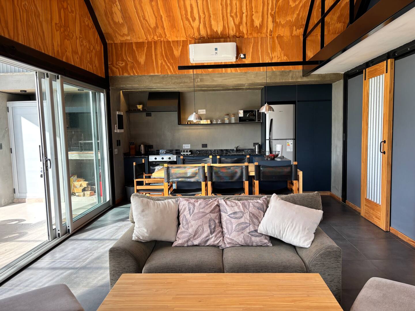 Tiene interiores luminosos, amplios ventanales y una atmósfera cálida, ofreciendo todo lo necesario para una estadía relajada: dos dormitorios, cocina totalmente equipada, galería techada con parrilla, pileta, jardín privado, fogón exterior, lavarropas y Wi-Fi estable.
