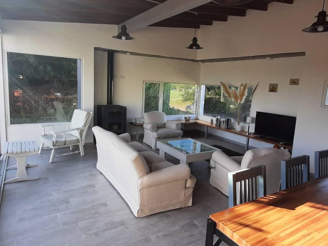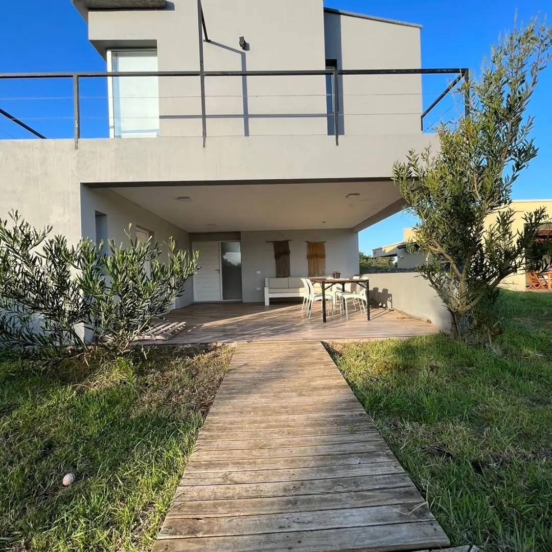 La casa está preparada para alojar hasta 8 personas y cuenta con tres dormitorios amplios, dos baños completos (uno en suite), living-comedor integrado con salamandra, cocina full equipada y lavadero. El área exterior ofrece una galería semi techada con parrilla, mesa para 8, fogón y un jardín rodeado de verde que invita a relajarse en cualquier momento del día.
